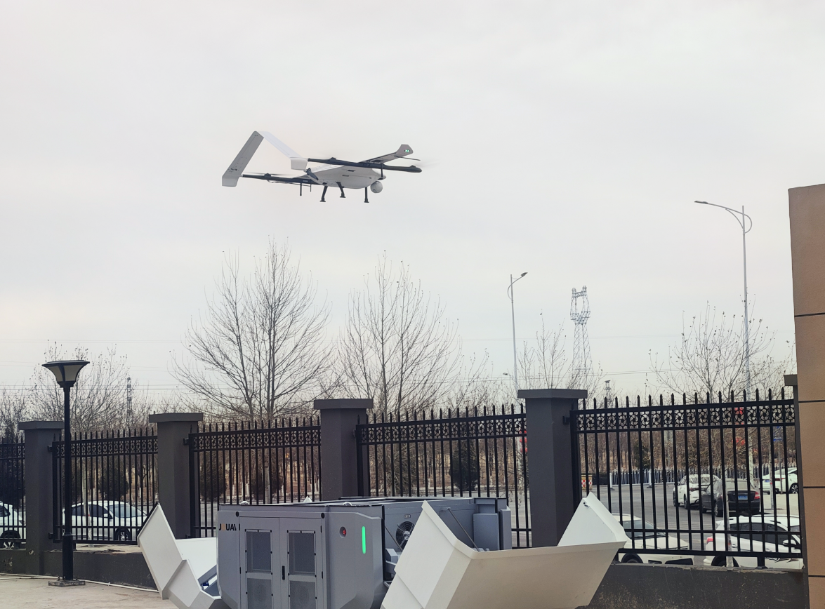 据介绍,垂直起降固定翼无人机具有飞行时间久、范围广、起降场地不受限、巡检结果快速回传等诸多优点。本次所部署的垂起固定翼机巢覆盖约200平方公里,可对6条超、特高压输电线路及银川东换流站周边进行巡视。该机巢能确保无人机与地面控制中心的稳定连接,通过云监控平台实现多任务协调以及飞行数据实时监控,具备“边飞行、边传输、边处理、边显示”的功能,为输电线路巡视提供现场的最新态势。同时,机巢还具备自动充电、维护等功能,大大提高了无人机的使用效率和可靠性。