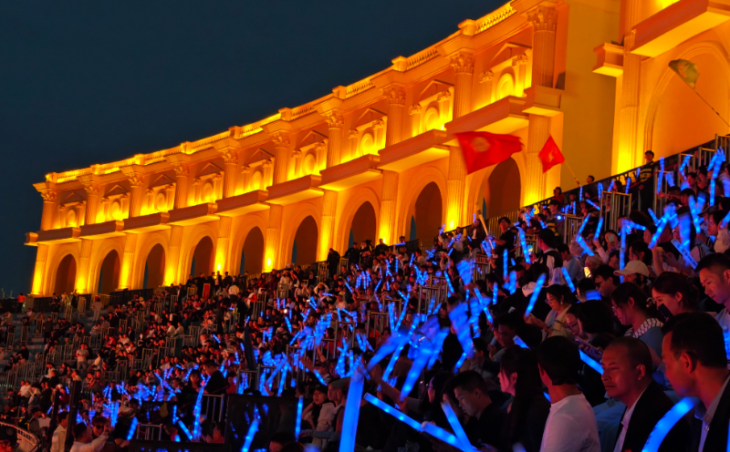 夕阳西下,巍峨的贺兰山与阅海湖披上金色霞光,大家在领唱歌手的带领下,共同唱响《团结就是力量》《美丽中国》《我的祖国》《我爱你中国》等歌曲,提前为祖国送上生日祝福。览山落日见证了他们在赛道上拼搏、在岗位上付出的身影,也聆听着他们胜利的欢歌和对祖国的深情。