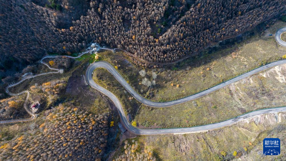 10月26日在宁夏固原市隆德县拍摄的六盘山秋景(无人机照片)。