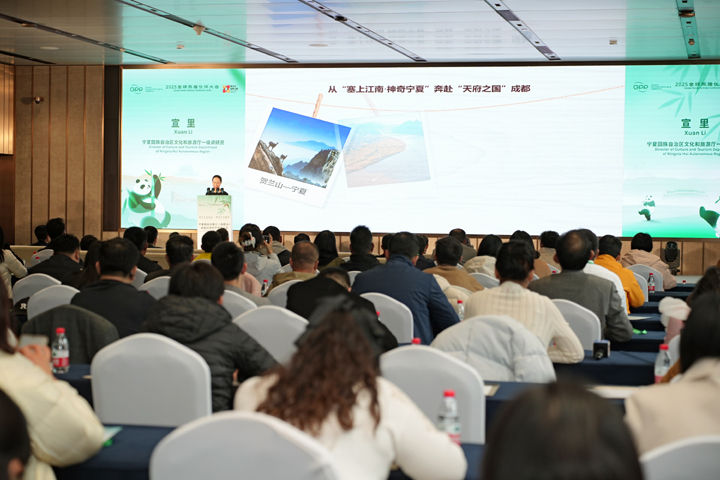 当贺兰山的晨光洒向黄河两岸的金色稻浪,当岷江的碧波轻抚青城山的翠竹幽谷,11月21日,在四川成都举办的“2025全球熊猫伙伴大会·宁夏特色农产品推介活动”上,宁夏回族自治区文化和旅游厅代表向与会嘉宾作推介。她以三个篇章深情讲述宁夏的自然造化、历史积淀与时代新韵,带领与会嘉宾沉浸式感受这片土地的神奇与温暖。