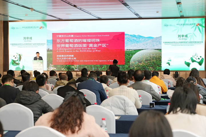 宁夏贺兰山东麓葡萄酒管委会副主任刘辛彧作推介发言。