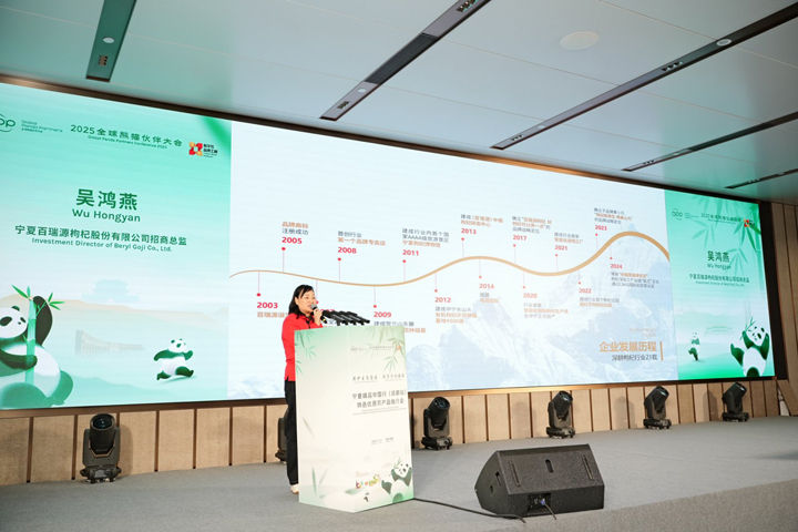 宁夏百瑞源枸杞股份有限公司招商总监吴鸿燕作企业推介。
