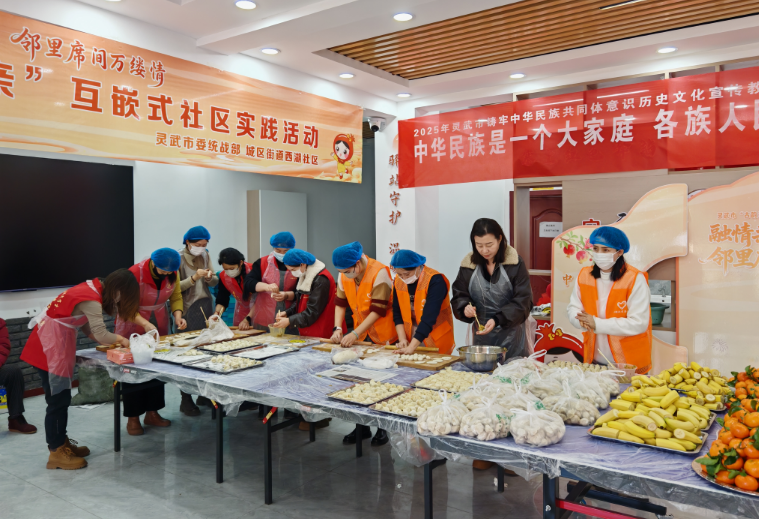 为铸牢中华民族共同体意识,增进各民族群众情感交流,12月8日,灵武市委统战部联合城区街道水木灵州社区、西湖社区、西平路社区,开展“古韵灵州一家亲”互嵌式社区实践活动。活动以包饺子、文艺展演、理论宣讲等群众喜闻乐见的形式,让各民族群众在温馨互动中拉近距离、凝聚共识,绘就民族团结同心圆。