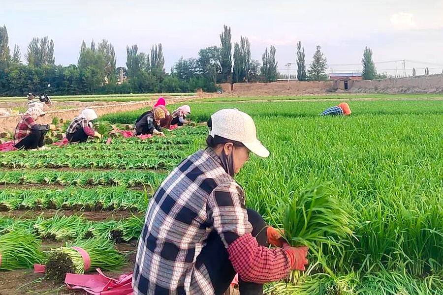 在产业发展与兜底保障的基础上,金银滩镇坚持“赈”“育”结合,通过“村集体经济组织+本地务工”模式,优先吸纳农村劳动力参与以工代赈项目,不仅推动从‘输血式’帮扶向‘造血式’赋能转变,还辐射带动韭菜、小黑麦、芝麻蜜香瓜等特色产业提质增效。
